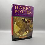 Rowling, J. K.: Harry Potter and the Prisoner of Azkaban. London: Bloomsbury, Bloomsbury, First edition, third printing. 8vo., pp.317, [i]. Light toning, very slight separation between half-title and title. Pictorial boards. Top edge a little foxed, very good indeed. Dust jacket very mildly creased at ends of spine, near fine. Third instalment in the Harry Potter series. Ref: 54861show full image..
