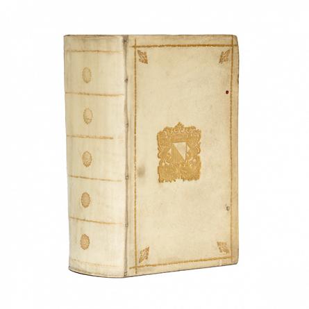 Description: First edition thus. 2 vols in 1, 8vo, pp.[xxii], cxxii, 499, [I]; [iv], 503-1262, [c] + additional engraved title-page by F. Van Bleyswyk. Woodcut initials, head- and tail-pieces, 2nd title-page to vol.II. Pencilled code at head of title-page, light foxing becoming heavier, quite toned from gathering 3P onward, occasional small inkblots. Contemporary vellum prize binding, gilt spine, gilt frame, gilt corner pieces and centrepiece with arms of Utrecht to each board, edges lightly sprinkled red and blue. Some greyish marks but generally clean, rear joint a little weak, ties lost, without ffep, very good.