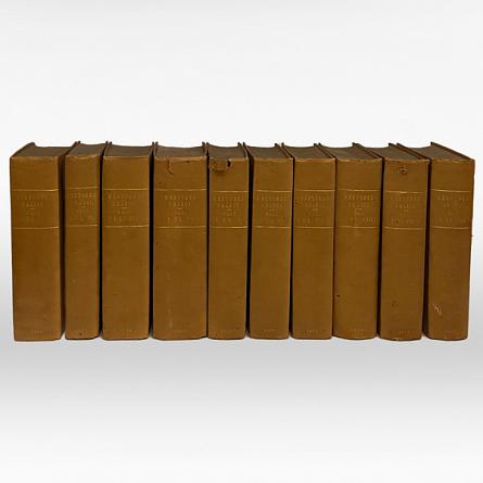 Description: 9 vols.. bound as 10 (vol. 7 in 2 parts). 8vo.. Text in Greek, introduction and notes in Latin. Vol. 1 foxed. Pinkish-purple cloth, simple gilt titles to spines, edges sprinkled red. Spines very much sunned and a little brittle with fading extending just over the joints. Vols. 4, 5 and 7 pt i with torn head caps, a few smudgy marks to boards, endpapers toned, still very good sound copies overall.