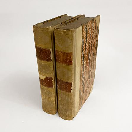 Description: 2 vols., 8vo., pp.xiii, [i], 688; viii, 678. Complete in 2 vols., text and apparatus in Latin. Occasional spots of foxing, very good. Contemporary half vellum, gilt spines with red title and volume labels, marbled boards, edges and endpapers. Binding not quite identical to Propertius [54771] but very much in the same spirit. Spines slightly greyed, chips to label edges and a bit of loss to vol. I label, very good.
