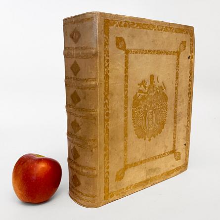 Description: 3 vols bound as 1. First edition thus. 4to., pp. [lxx], 1178, [l] + engraved frontispiece. Title-page in red and black with engraved vignette, woodcut initials, head- and tail-pieces. Occasional light spots and smudges, an occasional leaf (eg. 2A4) very toned, some pages a bit dusty towards top edge. Later prize vellum with prize certificate bound in, Spine gilt with raised bands, gilt borders, frames and centrepiece arms of Amsterdam to boards, edges sprinkled red and blue. Spine a little greyed, rear centrepiece slightly worn, a few smudgy marks, ties lost, very good. In pencil, to blank preceding frontis, 'Amsterdam, 2 Novembre 1946'. Certificate with large engraved arms of Amsterdam, made out to Jan Wilem Tilanus and dated 1839.